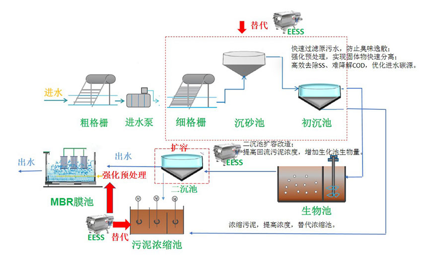 對(duì)污水中的SS有較強(qiáng)的去除能力,在一個(gè)緊湊單元內(nèi)實(shí)現(xiàn)固體分離、污泥濃縮、污泥脫水。適用于污水處理廠運(yùn)營(yíng)優(yōu)化、提標(biāo)提效改造、黑臭水體應(yīng)急處理、工業(yè)廢水處理等領(lǐng)域的污水預(yù)處理。