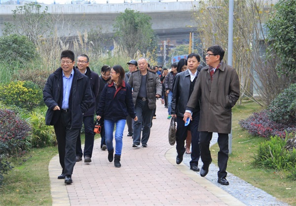 中國(guó)水環(huán)境集團(tuán)副總裁邵彥青陪同專家組考察青山再生水廠活水景觀公園