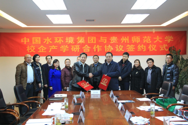 2016年12月21日,中國水環(huán)境集團與貴州師范大學地理與環(huán)境科學院舉行校企產(chǎn)學研合作協(xié)議簽約儀式。貴州師范大學黨委委員、副書記劉肇軍、教務處副處長李炳乾、地理與環(huán)境科學院黨委書記楊建紅、院長安裕倫及中國水環(huán)境集團貴州公司常務副總經(jīng)理高霖、副總經(jīng)理王平、財務總監(jiān)李建強等領導出席簽約儀式。