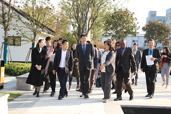 11月23日,聯(lián)合國亞洲及太平洋經(jīng)濟社會委員會(UNESCAP)宏觀經(jīng)濟政策和融資發(fā)展司司長Hamza Malik和聯(lián)合國非洲經(jīng)濟委員會(UNECA)能力發(fā)展司司長Stephen Karingi攜相關官員一行4人考察南翔下沉式再生水廠。財政部PPP中心副主任韓斌、上海市及嘉定區(qū)財政局相關領導陪同考察。中國水環(huán)境集團上海嘉定公司總經(jīng)理褚武越為中外來賓做項目介紹。