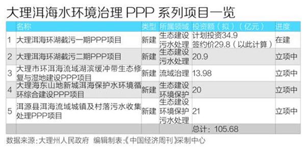為此,大理州政府組織多方力量繼續(xù)利用PPP模式進(jìn)行系統(tǒng)的洱海治理。這樣算來,加上大理洱海環(huán)湖截污一期PPP項(xiàng)目的29.8億元,在洱海環(huán)境綜合治理上利用PPP模式已經(jīng)投入和即將投入的總額將達(dá)到105.68億元。