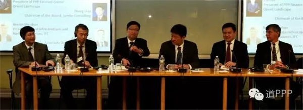 第二場嘉賓對話的主題是“社會資本參與中國PPP”。嘉賓包括中國水環(huán)境集團(tuán)董事會秘書、副總裁房勇、中國鐵建十七局集團(tuán)董事長盧朋、東方園林公司PPP財政中心總裁左志、濟(jì)邦咨詢公司董事長張燎和國際金融公司全球基礎(chǔ)設(shè)施和自然資源部主任BernieSheahan。