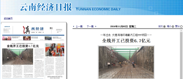 一年過去 大理洱海環(huán)湖截污工程PPP項目——全線開工已投資6.7億元——《云南經(jīng)濟日報》